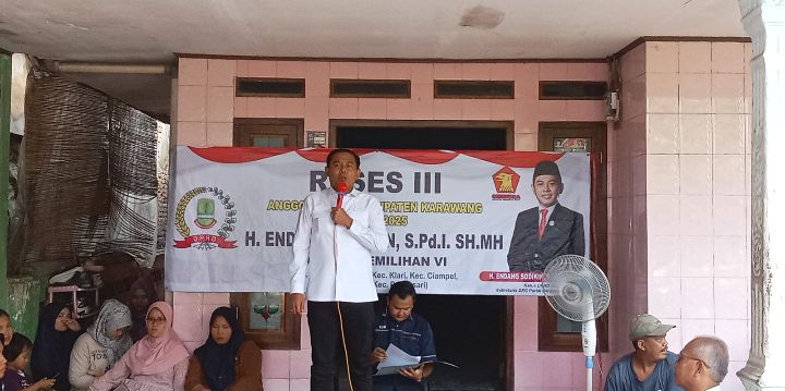 Karawang, Lintaskarawang.com -Ketua DPRD Kabupaten Karawang, H. Endang Sodikin, S.Pd.I., yang juga menjabat sebagai Sekretaris DPC dari partai Gerindra,mengadakan kegiatan reses di halaman rumah Bapak Dede, yang berlokasi di Dusun Krajan 02, Desa Curug kec.klari,kab. Karawang