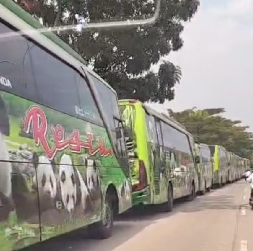 Karawang, Lintaskarawang.com – Masyarakat Karawang kembali dibuat resah dengan pemandangan yang mengganggu lalu lintas di Jalan Baru Lamaran, dekat flyover. Sejumlah bus milik perusahaan otobus (PO) tampak berjejer parkir di tepi jalan, menimbulkan kesan bahwa para pengusaha PO Bus tersebut tidak memiliki garasi memadai atau bahkan mungkin sudah penuh.
