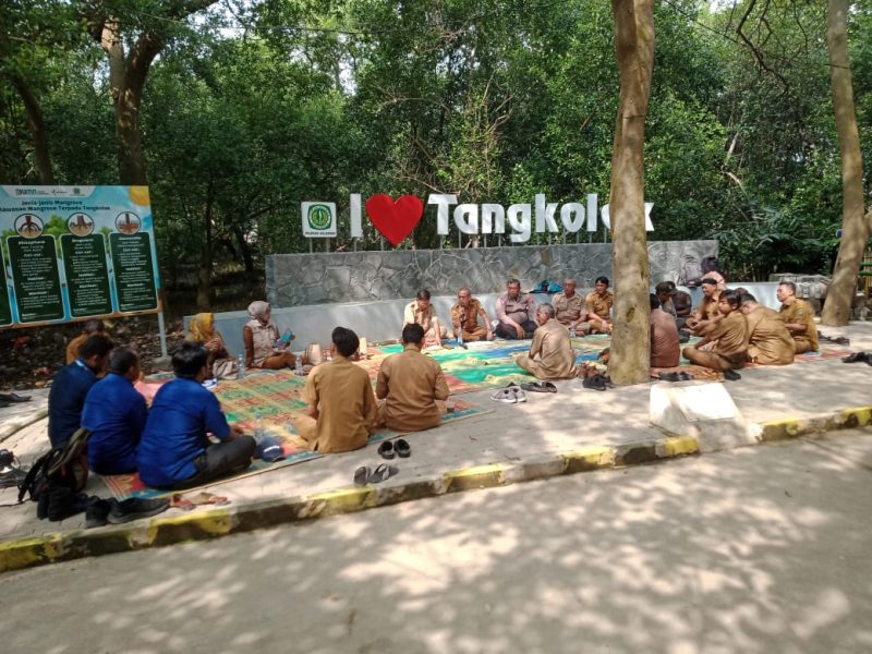 Rangkaian kegiatan dilanjutkan dengan peninjauan langsung kawasan wisata hutan mangrove, edukasi tentang fungsi ekologis tanaman mangrove, serta diskusi kolaborasi pengembangan wisata berbasis masyarakat.