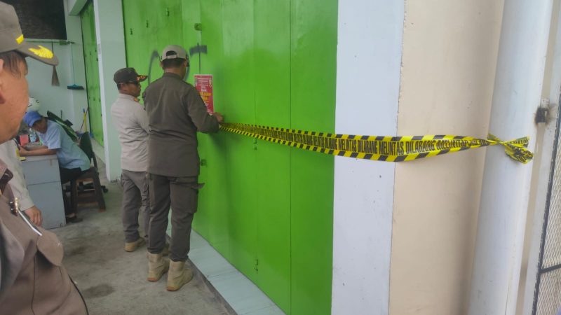 Pada pintu lokasi usaha tersebut, tampak terpasang stiker segel bertuliskan: