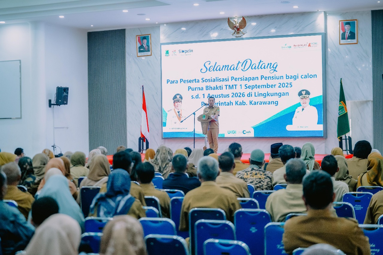 Peluncuran SIMPELIN digelar di Aula Husni Hamid, Pemkab Karawang pada Senin (7/7/2025), bertepatan dengan kegiatan Sosialisasi Persiapan Pensiun untuk ASN yang akan memasuki masa pensiun periode September 2025 hingga Agustus 2026.