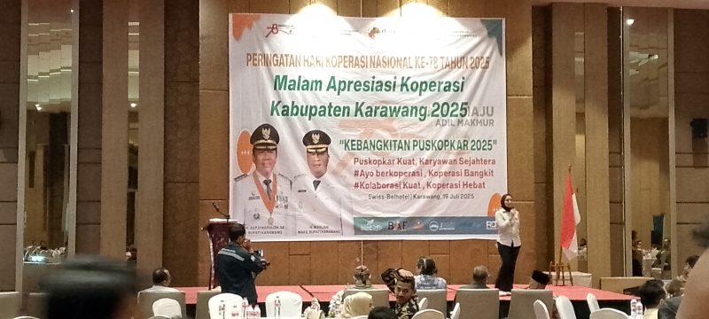 Karawang, Lintaskarawang.com – Semangat baru membara dalam tubuh gerakan koperasi karyawan di Kabupaten Karawang. Dalam sebuah momentum bersejarah bertajuk *“Malam Apresiasi dan Pengukuhan Pengurus PUSKOPKAR Kabupaten Karawang Periode 2025–2029”*, Ponijan, SE secara resmi dilantik sebagai Ketua PUSKOPKAR Karawang. Acara tersebut digelar meriah di Hotel Swiss-Belinn Karawang, Jumat malam (19/7), dan menjadi tonggak penting kebangkitan koperasi karyawan menuju arah yang lebih progresif, kolaboratif, dan berdampak nyata bagi kesejahteraan masyarakat.