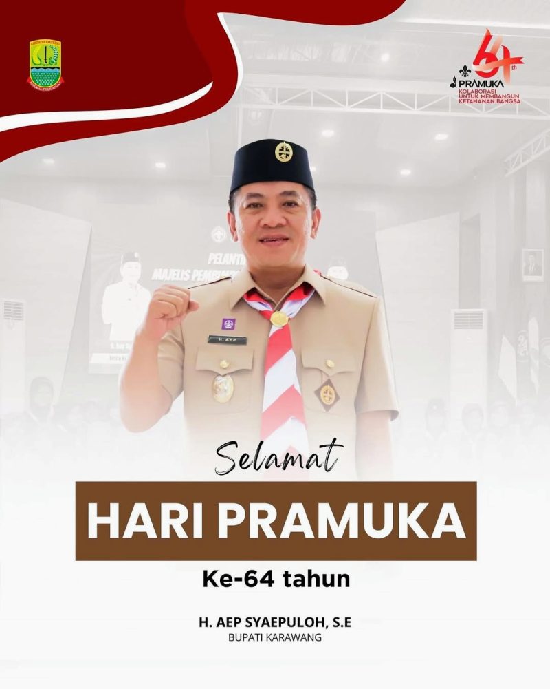 Karawang, Lintaskarawang.com– Bupati Karawang, H. Aep Syaepuloh, S.E., menyampaikan ucapan selamat memperingati Hari Pramuka ke-64 kepada seluruh anggota Gerakan Pramuka, khususnya di Kabupaten Karawang, serta masyarakat Indonesia secara umum.