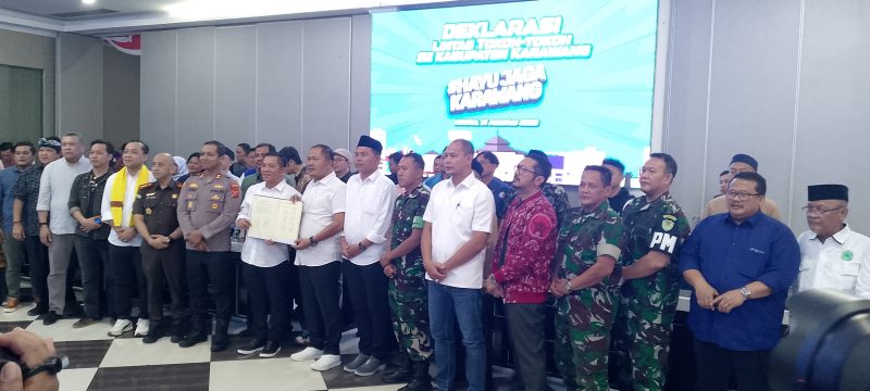 Karawang, Lintaskarawang.com – Dalam rangka menyikapi situasi nasional yang tengah memanas akibat aksi demonstrasi yang berpotensi mengarah pada tindakan anarkisme, Pemerintah Kabupaten Karawang menggelar acara Deklarasi Damai Masyarakat Karawang pada Minggu (31/8) bertempat di Kantor Bupati Karawang.