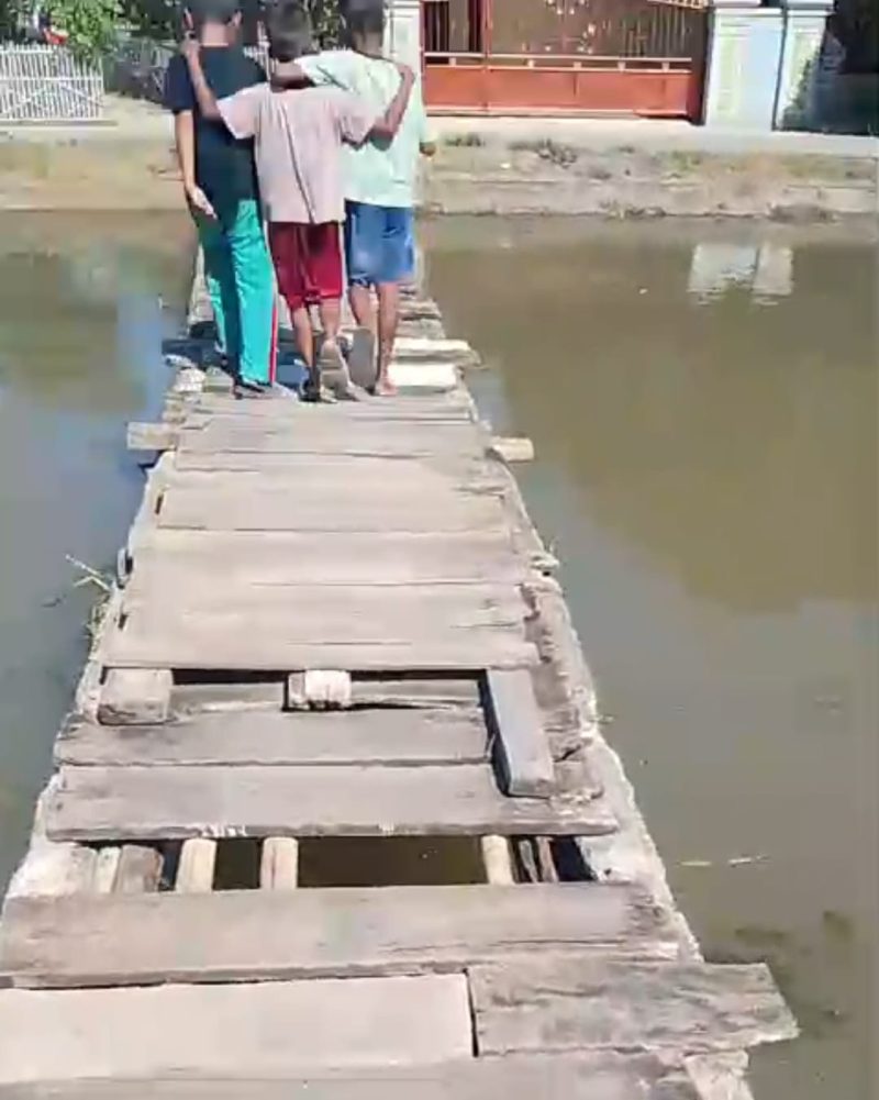 Warga sekitar mengaku khawatir, terutama karena jembatan itu kerap dilalui anak-anak sekolah setiap hari. Tak jarang, beberapa papan kayu sudah mulai patah dan bergeser, membuat para pengguna harus ekstra hati-hati saat melintas.