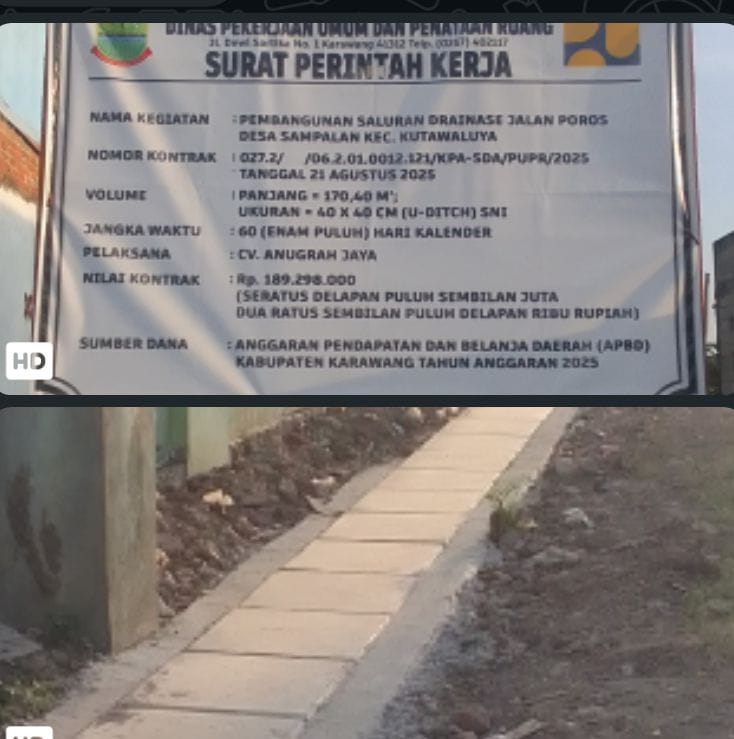 PEMKAB KARAWANG BANGUN SALURAN DRAINASE DI DESA SAMPALAN, WARGA SAMBUT BAIK