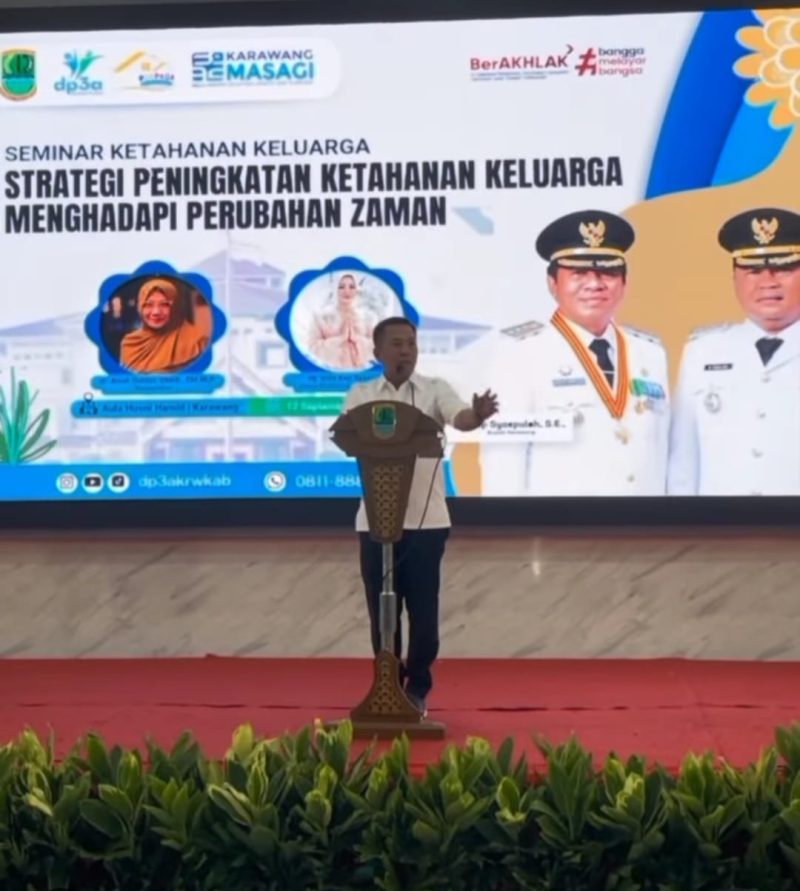 Karawang, Lintaskarawang.com – Bupati Karawang H. Aep Syaepuloh membuka Seminar Strategi Peningkatan Ketahanan Keluarga dalam Menghadapi Perubahan Zaman yang diinisiasi Dinas Pemberdayaan Perempuan dan Perlindungan Anak (DP3A) Kabupaten Karawang. Acara tersebut berlangsung di Aula Husni Hamid, Jumat (12/9/2025).