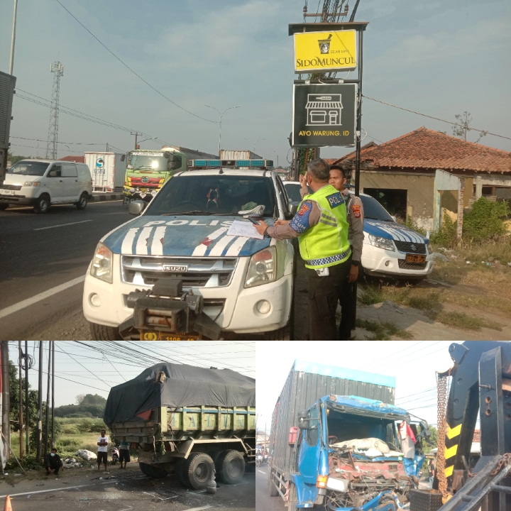 Pantura Arah Cikampek Cirebon Macet Total Tabrakan Wingbox vs Truk Puso tanah di Depan SPBU Kali Asin