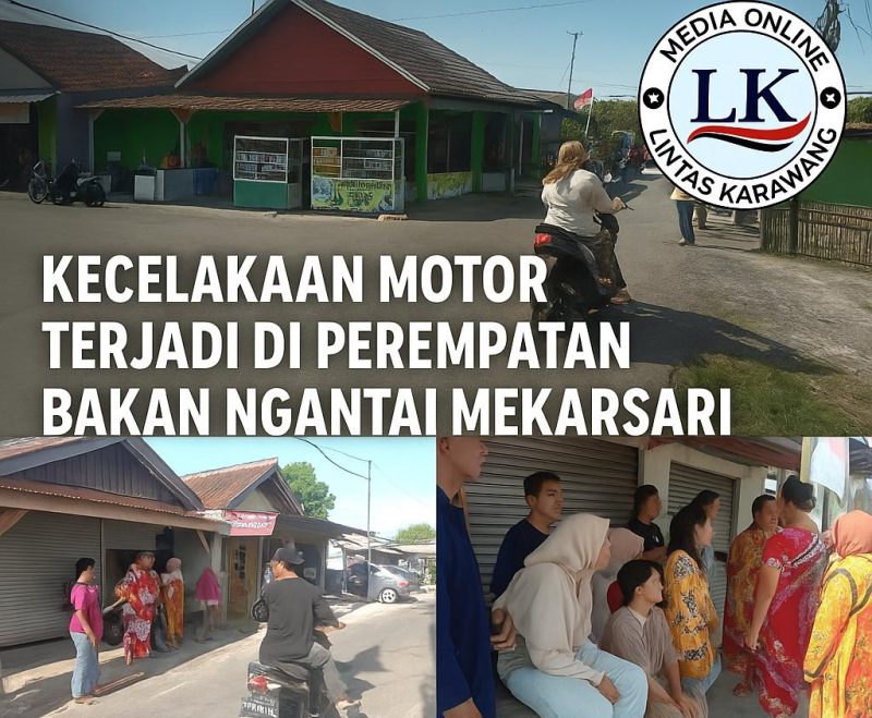 Karawang , Lintaskarawang.com – Kecelakaan lalu lintas kembali terjadi di perempatan Bakan Ngantai irigasi, Desa Mekarsari, Kecamatan Jatisari, Kabupaten Karawang, Minggu (28/9). Dua sepeda motor terlibat tabrakan setelah salah satu pengendara menyeberang tanpa memastikan kondisi arus kendaraan di jalur utama.