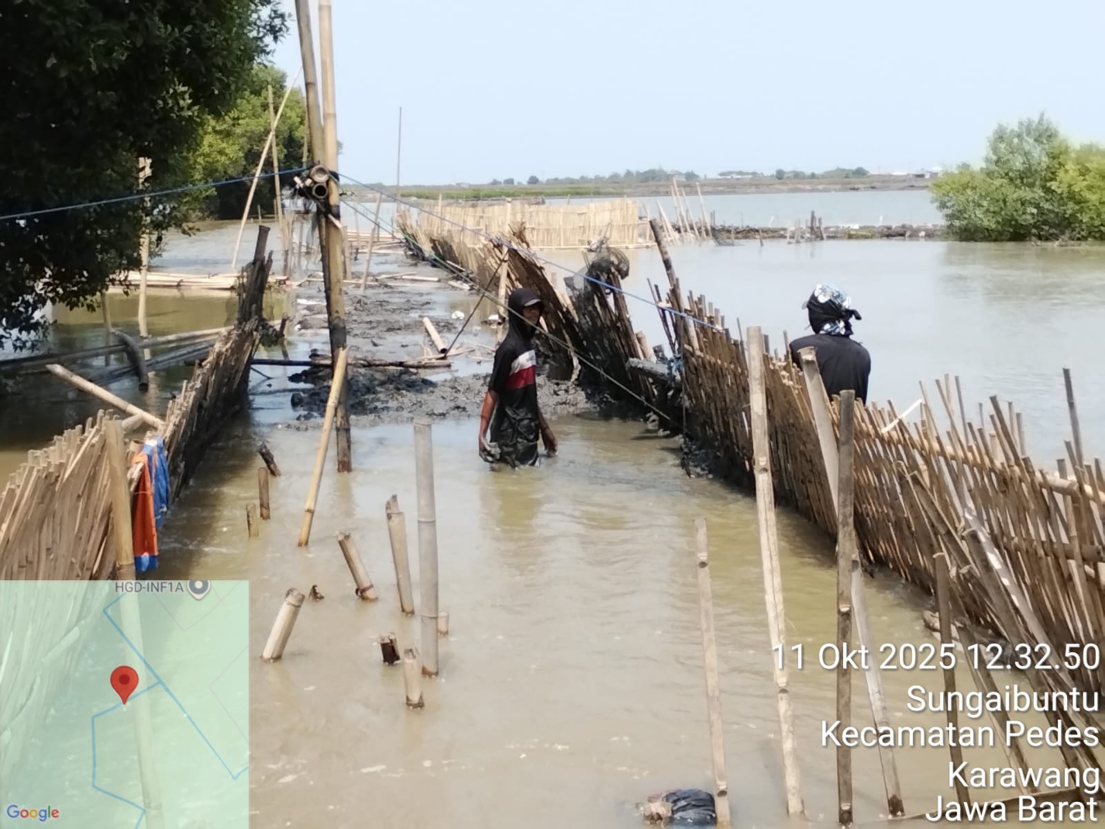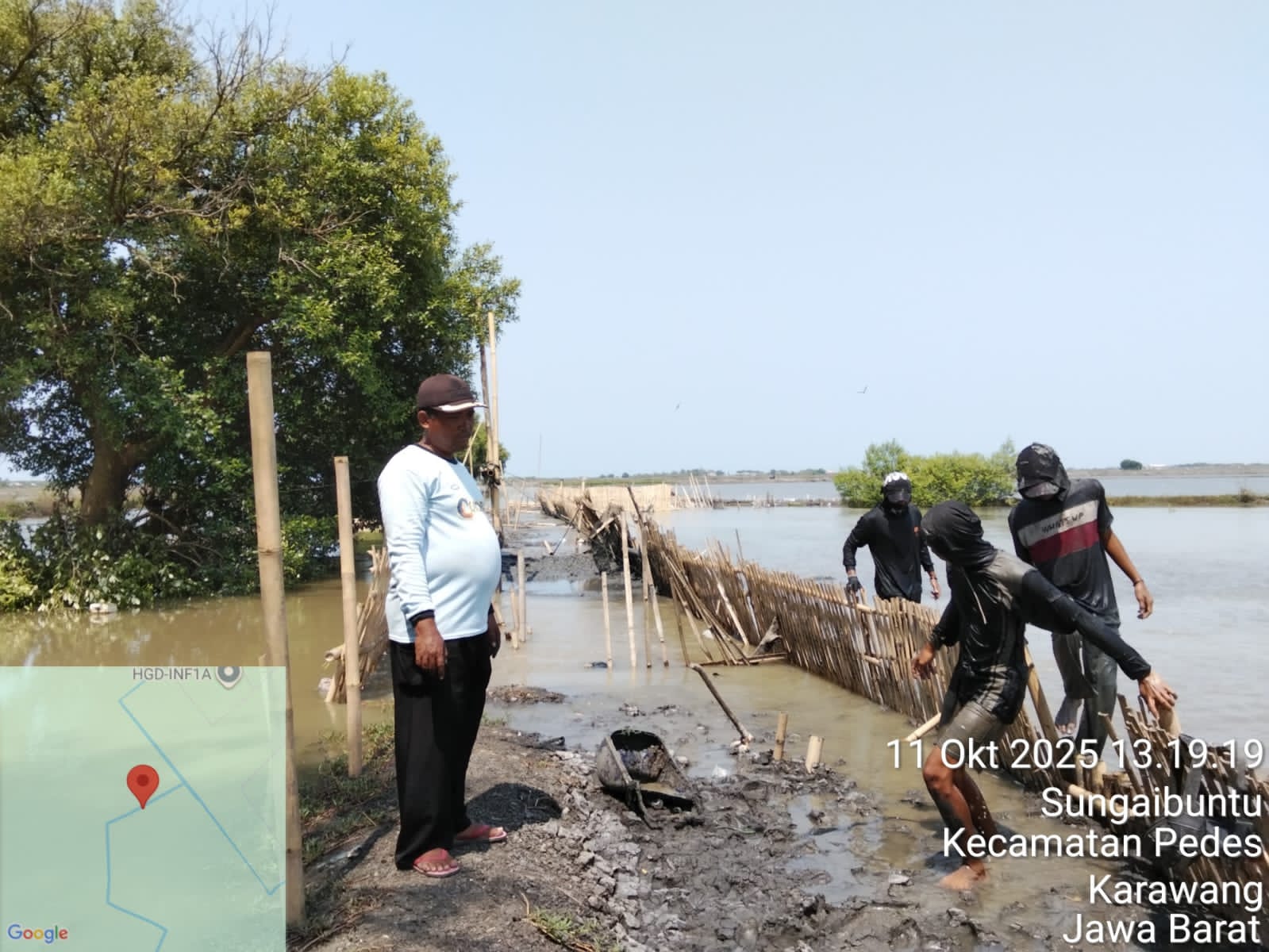 Karawang, Lintaskarawang.com — Sudah 13 hari lamanya Kepala Desa Gebang Jaya, Nur Yaman, bersama perangkat desa terus berupaya menanggulangi tanggul yang jebol akibat air laut pasang. Tanggul yang jebol tersebut menyebabkan air asin dari laut masuk ke area pesawahan warga, yang berdampak pada rusaknya lahan pertanian (11/10).