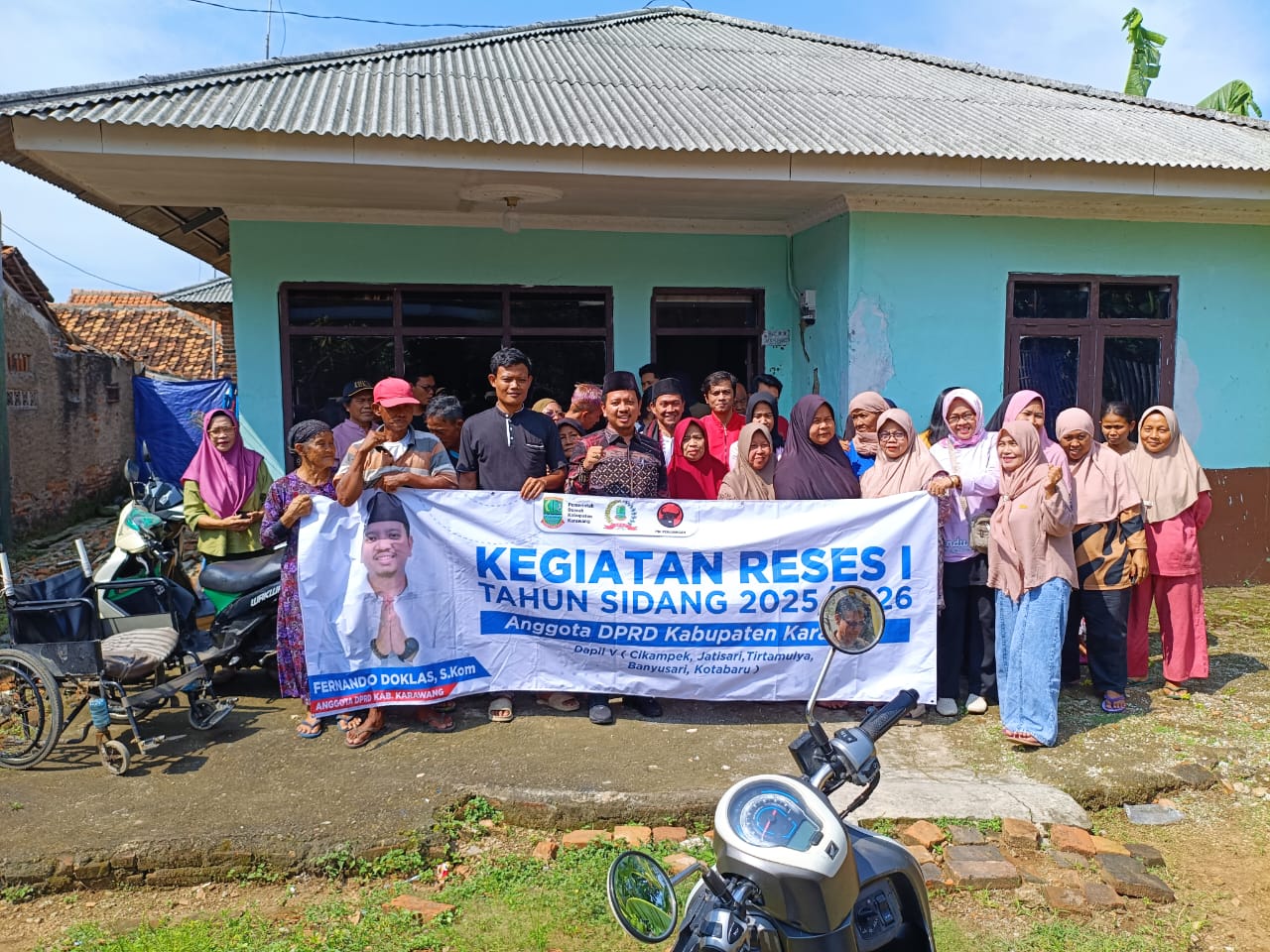 Karawang, Lintaskarawang.com Anggota DPRD Kabupaten Karawang Dapil V dari Fraksi PDI Perjuangan, Fernando Doklas, S.Kom menggelar kegiatan Reses I Tahun Sidang 2025/2026 di Dusun Wirakarya, Desa Cikampek Timur, Kecamatan Cikampek, Kabupaten Karawang, Minggu (02/11/2025).