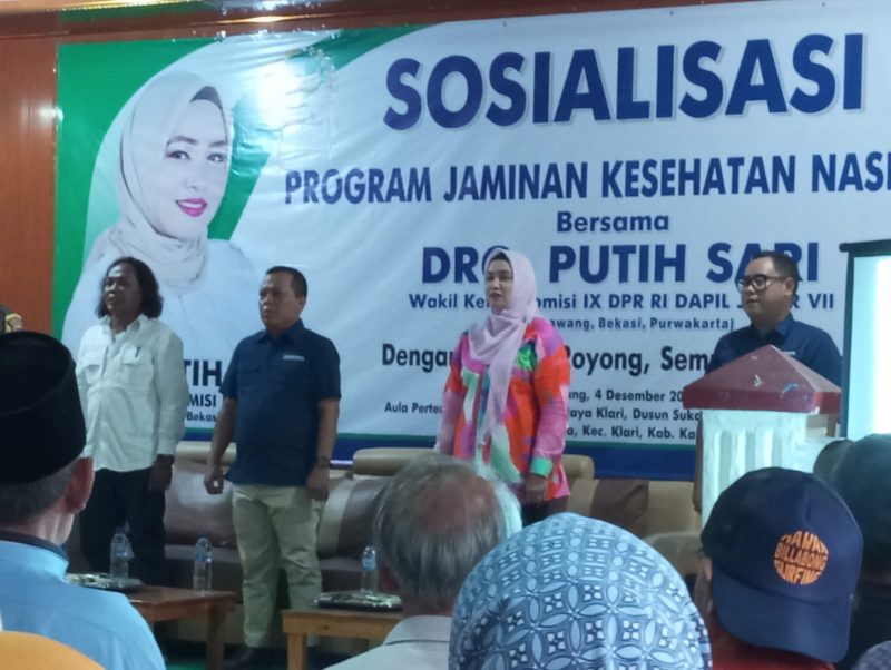 Karawang, Lintaskarawang.com Sosialisasi Program Jaminan Kesehatan Nasional (JKN) digelar bersama Wakil Ketua Komisi IX DPR RI dari fraksi partai Gerindra,DRG Putih Sari, di Dusun Sukamulya RT 20/RW 06, Aula Pertemuan Desa Anggadita, Kecamatan Klari, Kabupaten Karawang, Kamis (4/12/2025). Kegiatan ini mengusung tema “Dengan Gotong Royong Semua Tertolong”.