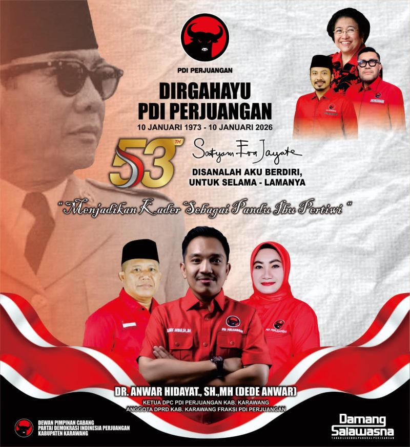 Lintaskarawang.com Ketua DPC PDI Perjuangan Kabupaten Karawang, Dr. Anwar Hidayat, S.H., M.H. (Dr. Dede Anwar), menyampaikan bahwa DPC PDI Perjuangan Kabupaten Karawang pada Kamis, 8 Januari 2026 telah melaksanakan Rapat Rutin DPC guna mematangkan persiapan peringatan Hari Ulang Tahun (HUT) PDI Perjuangan ke-53.