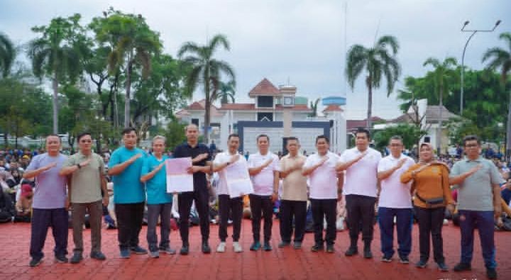 Senam Pagi dan Penandatanganan SLA, Bupati Karawang Tegaskan Semangat Super Team dalam Penanganan Bencana