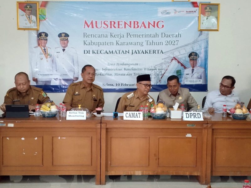 Karawang | Lintaskarawang.com – Pemerintah Kabupaten Karawang melaksanakan Musyawarah Perencanaan Pembangunan (Musrenbang) Rencana Kerja Pemerintah Daerah (RKPD) Tahun 2027 tingkat Kecamatan Jayakerta. Kegiatan tersebut digelar di Aula Kantor Kecamatan Jayakerta, Selasa (10/2/2026) pagi, dengan mengusung tema “Penyediaan Infrastruktur Konektivitas Wilayah yang Berkualitas, Merata, dan Terintegrasi.”