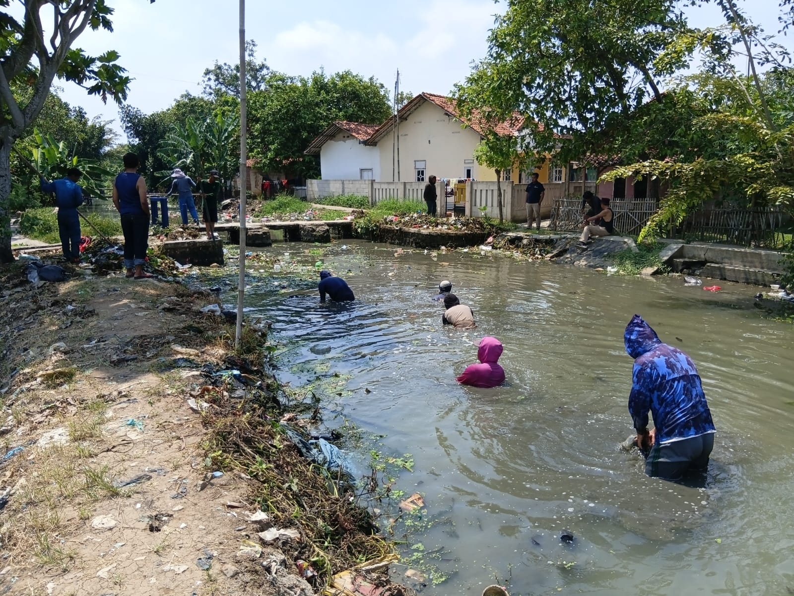 Pembersihan difokuskan pada tumpukan limbah dan sampah yang berada di sepanjang aliran irigasi. Berbagai jenis sampah ditemukan, mulai dari sampah rumah tangga hingga limbah seperti pampers dan kasur bekas yang menyumbat aliran air.